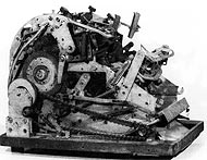 Ein starkes Team entwickelt die erste Falz- und Kuvertiermaschine. Auch der junge Chef steht auf dem Holzrost. [3]