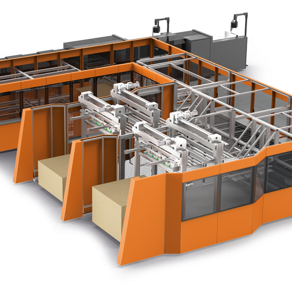 Herstellung massgefertigter Versandpakete aus Wellpappenbögen in Echtzeit.