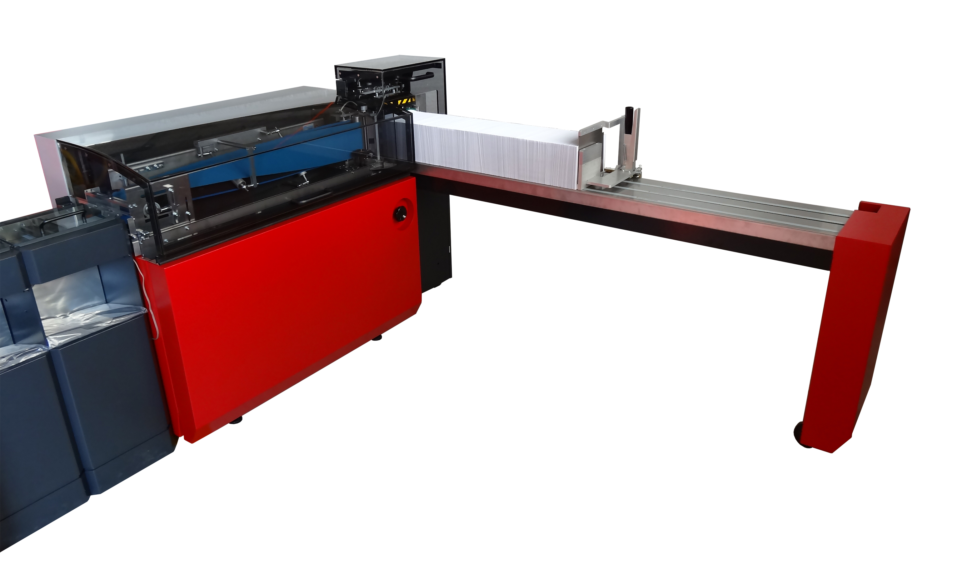 The system has a maximum performance up to 27,000 envelopes/hour (depending of inserting system) and the stacking capacity is about 2000 packings, depending of envelope and content thickness. An intelligent monitoring is checking the run and reports when vertical stacker is full.