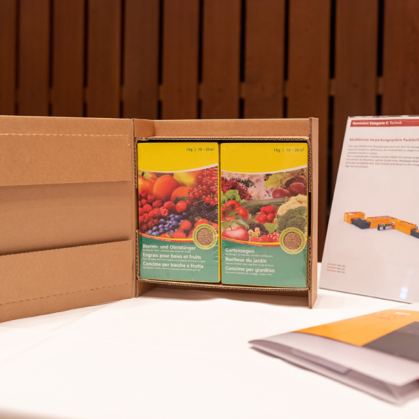 Kern AG has ticked all the right boxes with the PackOnTime® project. The innovative packaging system operates on sustainable recycled cardboard and eliminates the need for additional filling materials such as plastic, bubble wrap and polystyrene. The content of all kind of orders (single or multiple items) is measured in a 3D process, and then inserted into the tailor-made packaging. The innovative system is intended to address the worldwide booming parcel delivery market. The tailor-made packaging is designed to make the whole supply chain process environmentally friendly. This goal, and the associated savings in CO2, can be achieved with recycled cardboard, the reduction of filling materials and the better utilization of delivery vehicles.