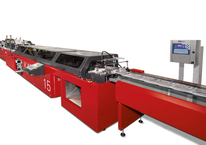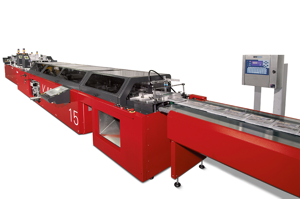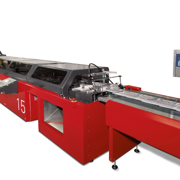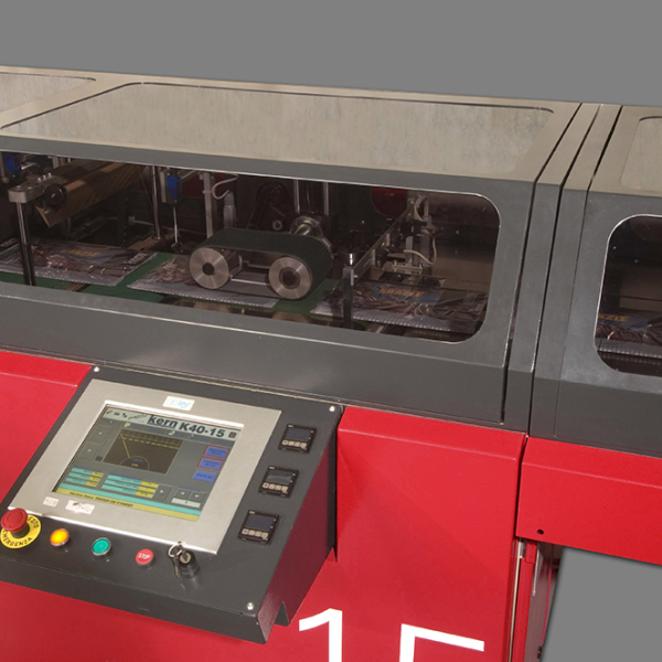 The K40-15 is a wrapping system developed primarily to handle mailing applications. Generally, the system is utilised to poly-wrap and dispatch bulk quantities of magazines, leaflets, and other publishing products. The K40-15 is extremely flexible and is designed for rapid changeovers. The system is capable of collating with great efficiency products of various types and dimensions. When evaluating the advantages of the K40-15, it is important to take into account not only the cycling speed but also the high throughput of the entire system.