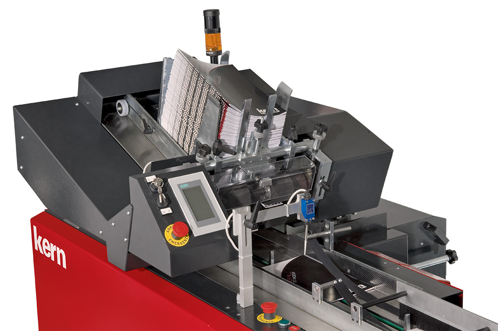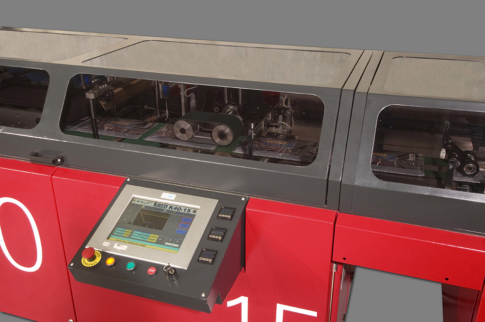 The K40-6 represents the entry-level machine of the series. It provides a cost-effective solution for wrapping magazines, books, and publishing and commercial products, in general. Hence, it targets companies which demand excellent output quality but do not require high speed. Despite being an entry-level machine, the K40-6 is equipped with a complete electronic control system. Thus, various product formats and the processing of jobs can be managed just as easily on a K40-6 as on other Kern 40 models. The K40-6 may also be used as a low-cost back up or to process secondary jobs.