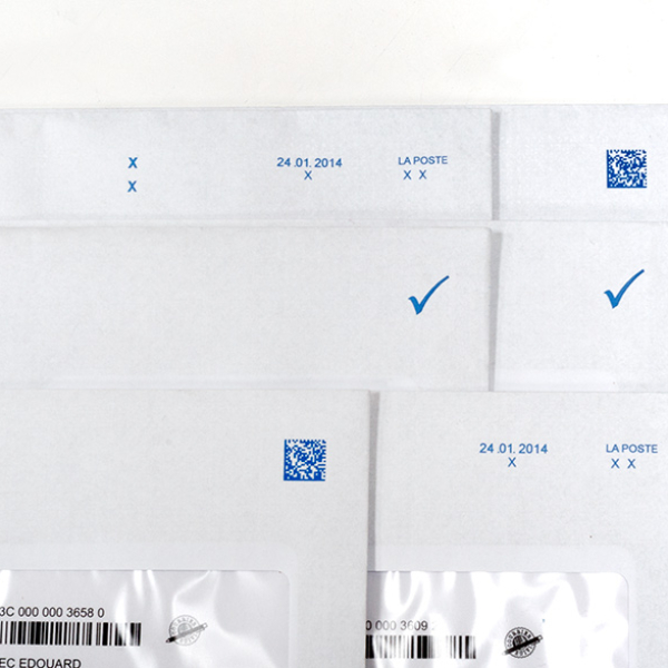 imprime à la volée et silencieusement les informations nécessaires issues de la production (mentions postales, date, logos…)