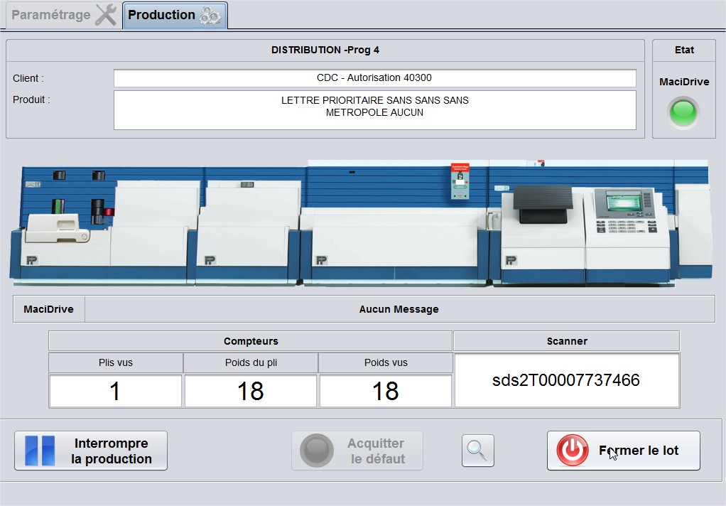 Le système MACI, entièrement automatique, se compose en entrée d’un margeur de chargement des plis qui dépile à la volée tous les formats d’enveloppes du C6/5 au C4. Un système d’acquisition des données entièrement paramétrable capable de lire tous les codes standard du marché (1D, 2D, Datamatrix, OCR) vous permet ensuite d’identifier automatiquement chaque pli.